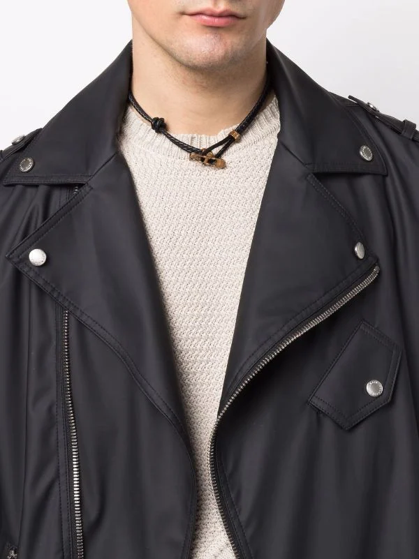 Détail Medusa, maille corde. Couleur : noir. Matière : cuir.