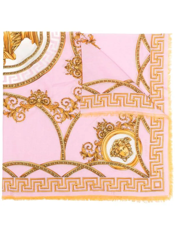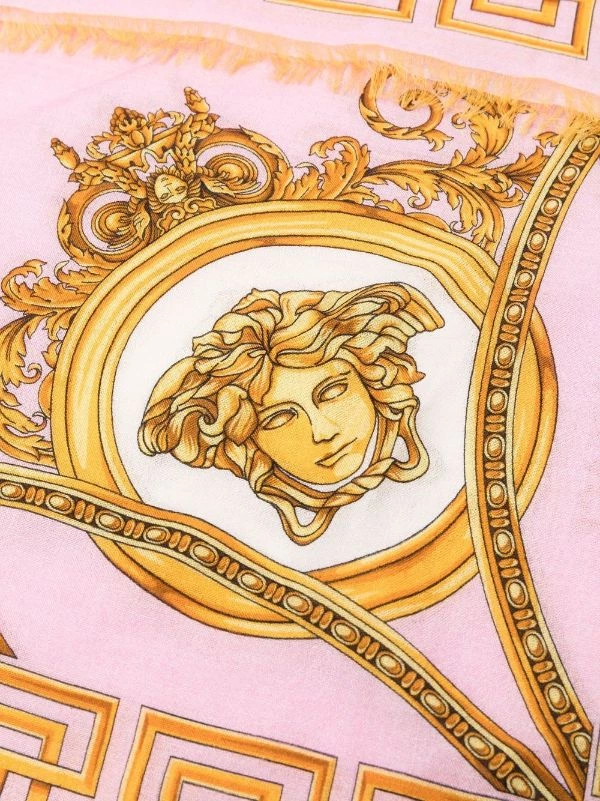 Motif Medusa, motif baroque, motif Greca signature imprimé, bordure à franges.