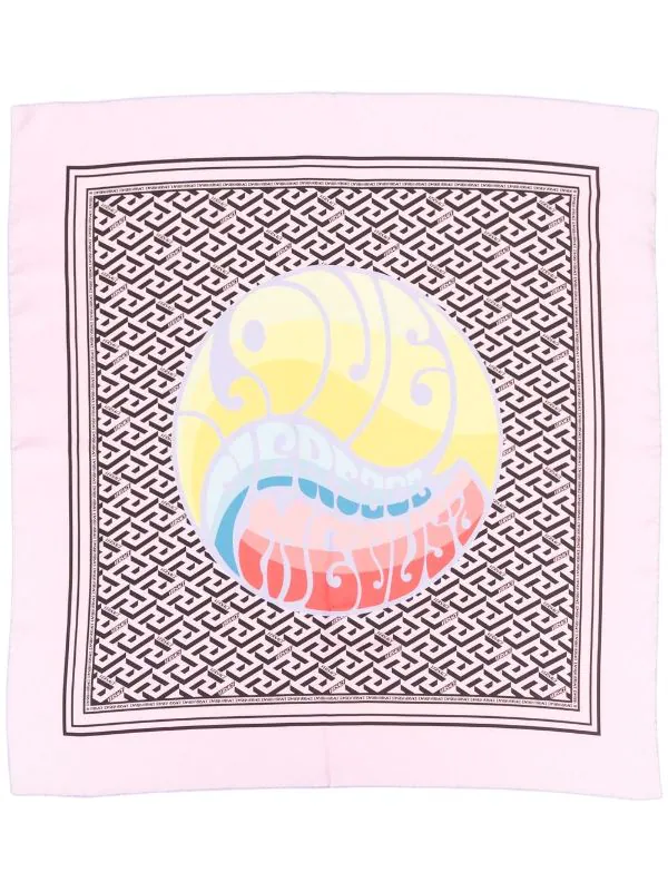 Détail Greca signature, imprimé graphique sur le devant, bords finis. Matière : soie.