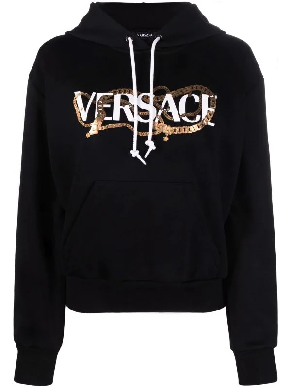 Logo imprimé à la poitrine, manches longues, bordures nervurées, patch logo sur le devant. Couleur : noir.