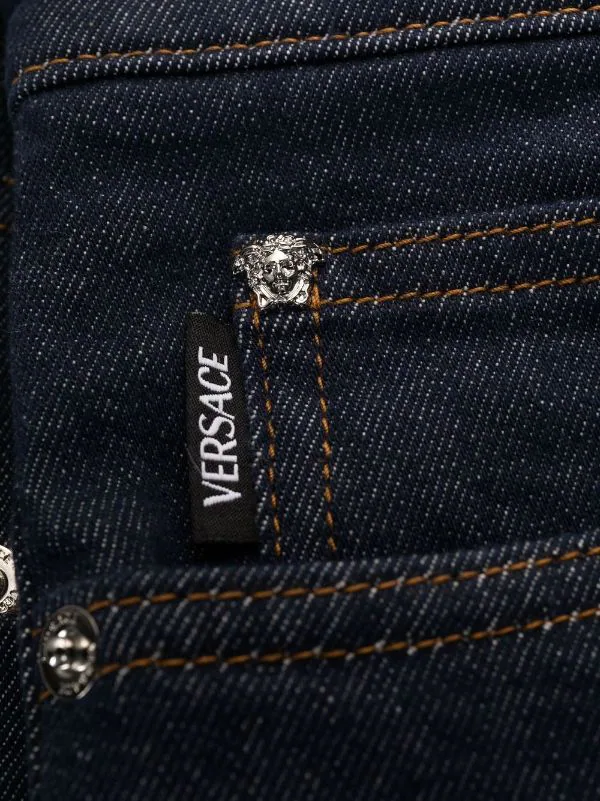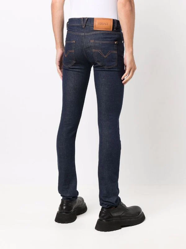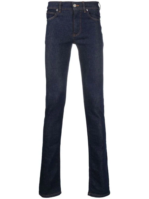 Patch logo sur l’arrière, passants de ceinture, fermeture à zip et boutons sur le devant, cinq poches classiques, coupe skinny.