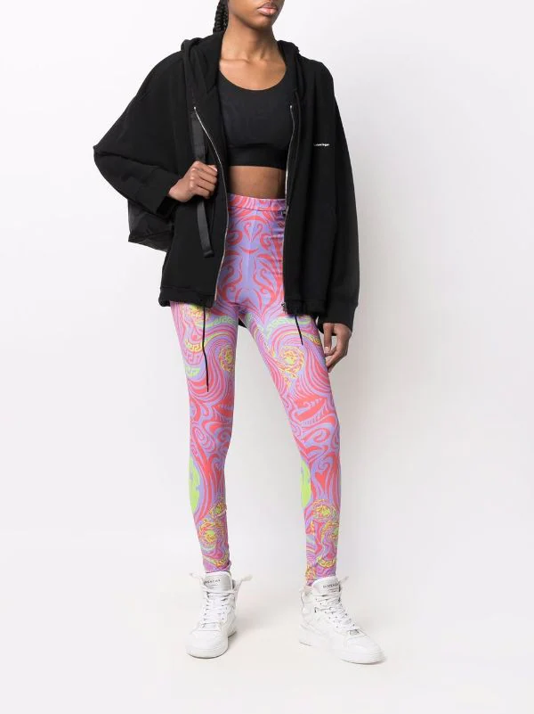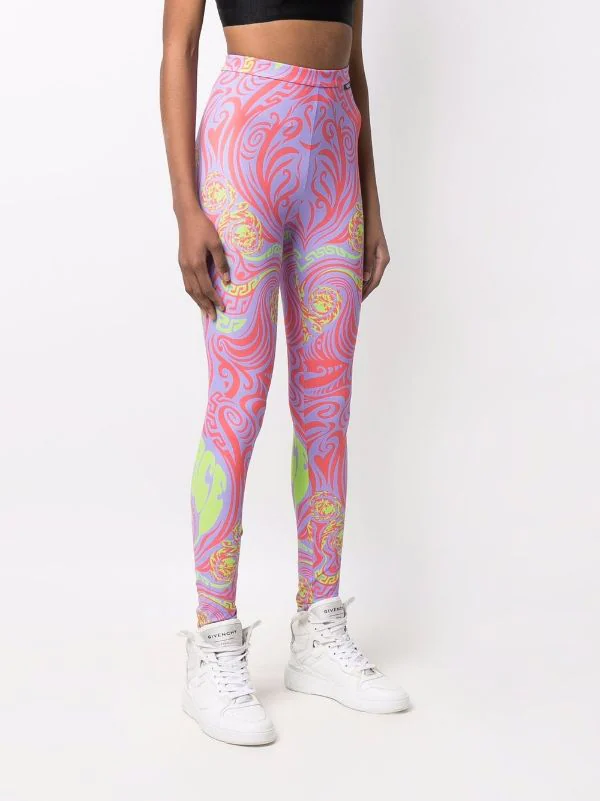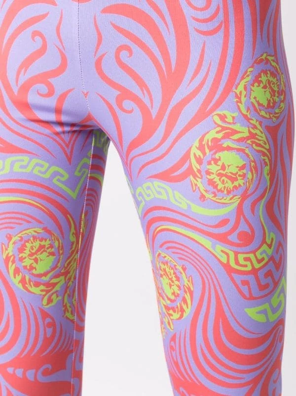 Étiquette logo, taille haute, ceinture élastique, coupe skinny, hauteur cheville.