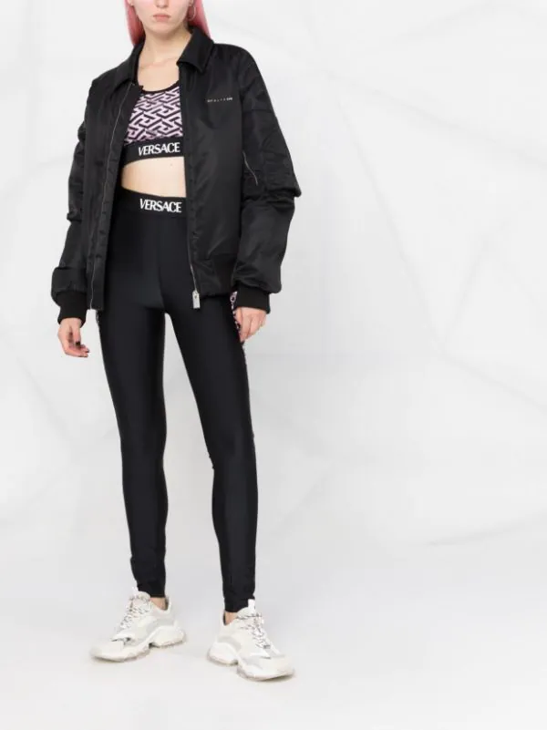 Construction stretch, imprimé La Greca signature, design à empiècements, ceinture à logo, coupe skinny.