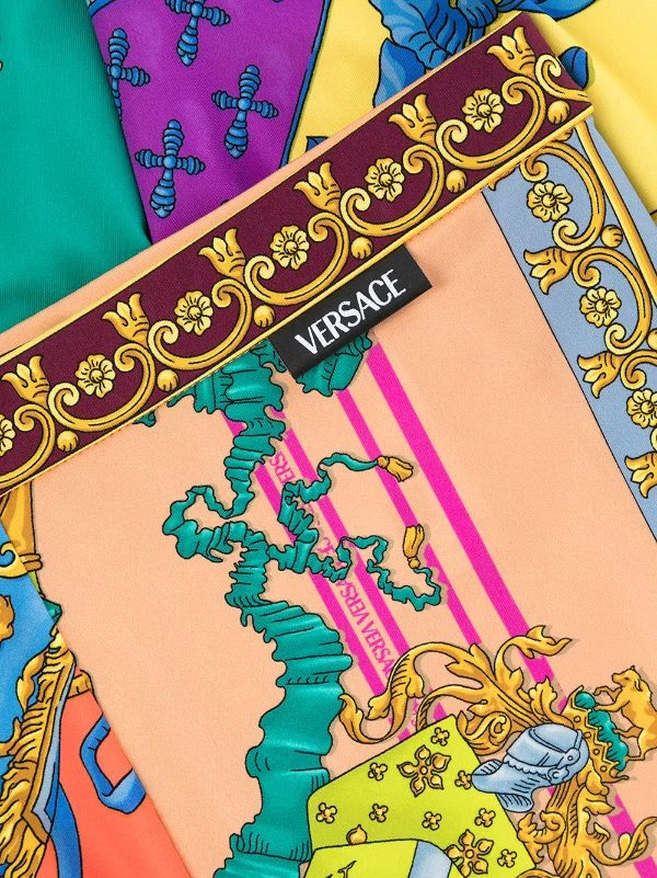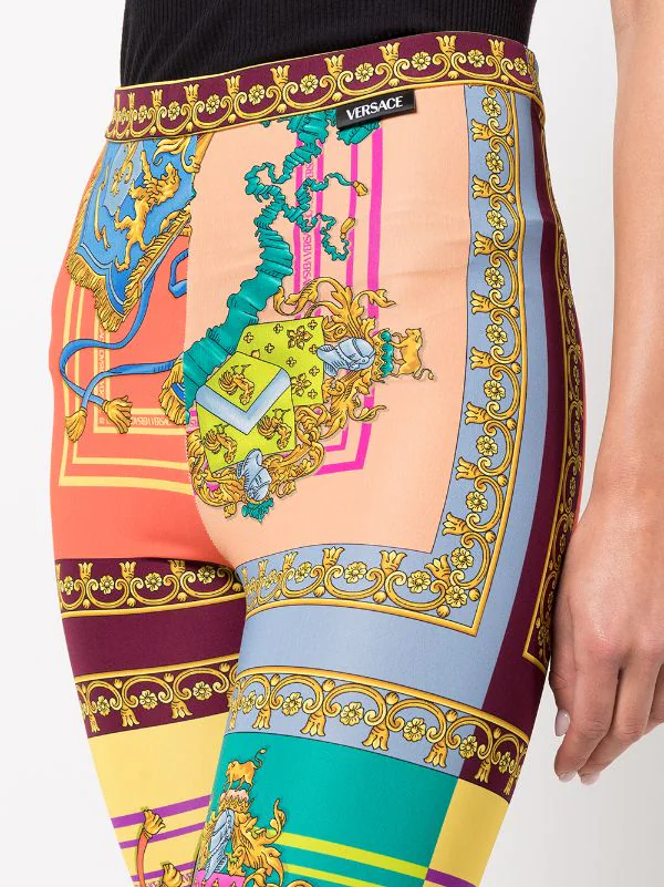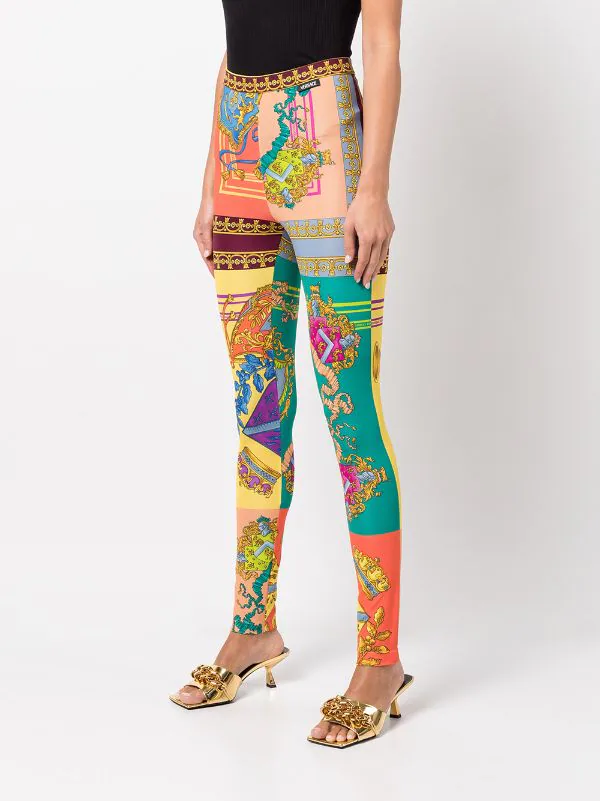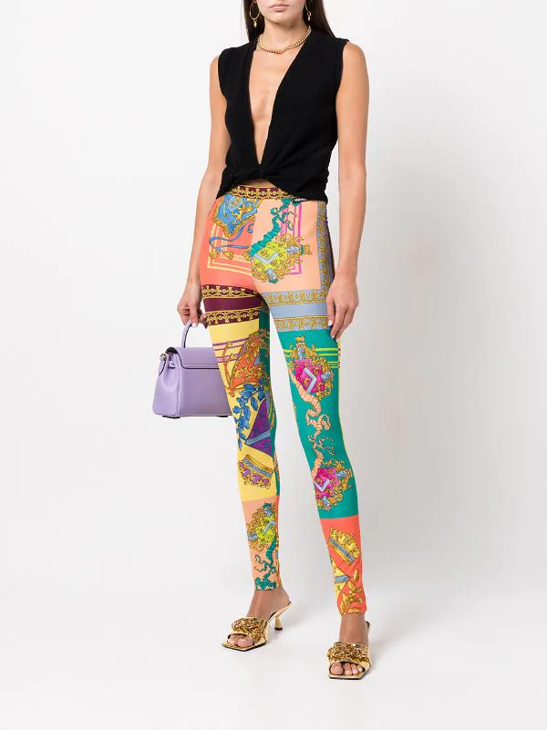 Vert vif, multicolore, imprimé graphique intégral, taille haute, ceinture élastique, construction stretch.