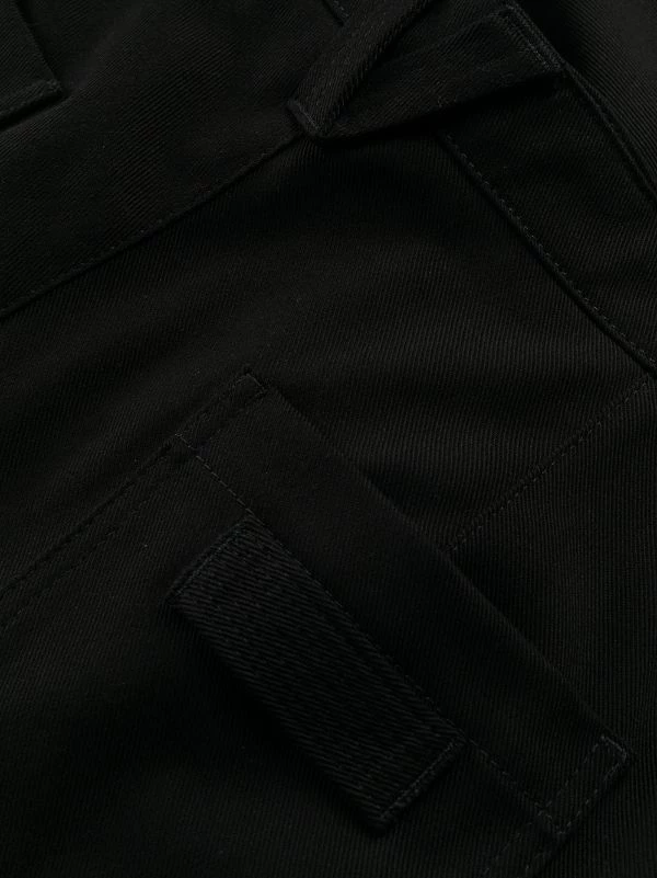 Noir, coton, passants de ceinture, fermeture zippée, coupe ample.