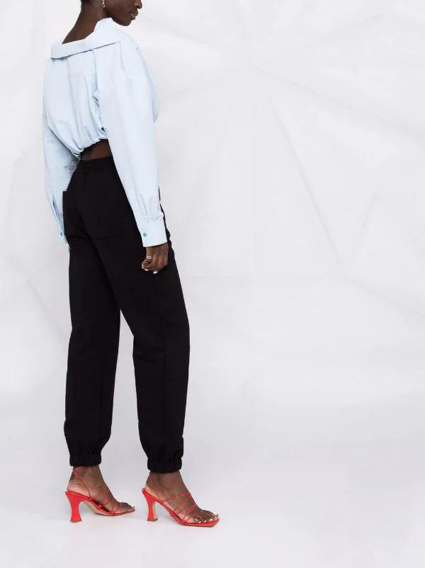 Appliqué logo, taille élastique à lien de resserrage, chevilles élastiques, poche arrière plaquée. Couleur : noir. Matière : coton.