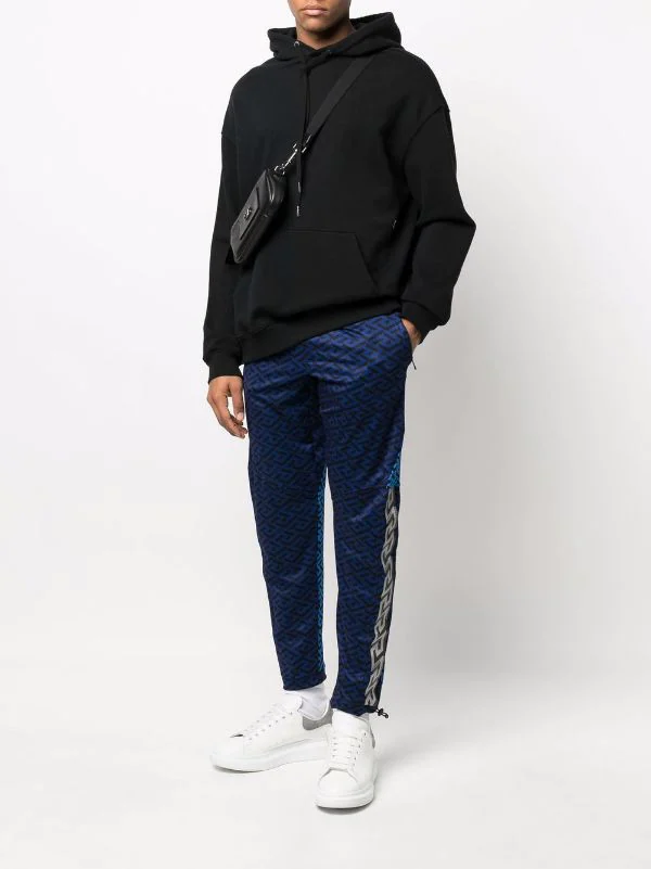 Motif monogrammé, design colour block, logo imprimé à l’arrière, ceinture élastique, deux poches latérales fendues.