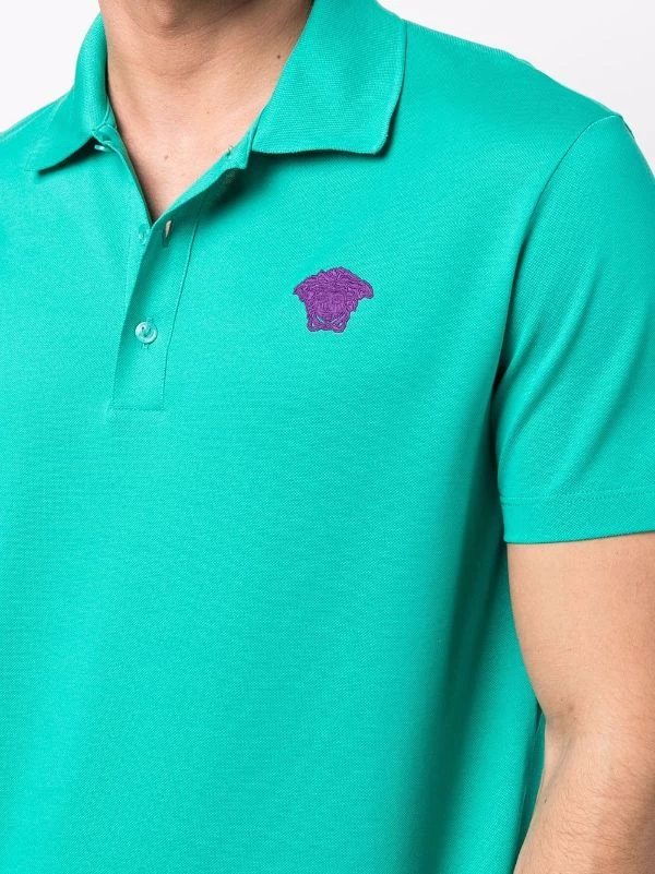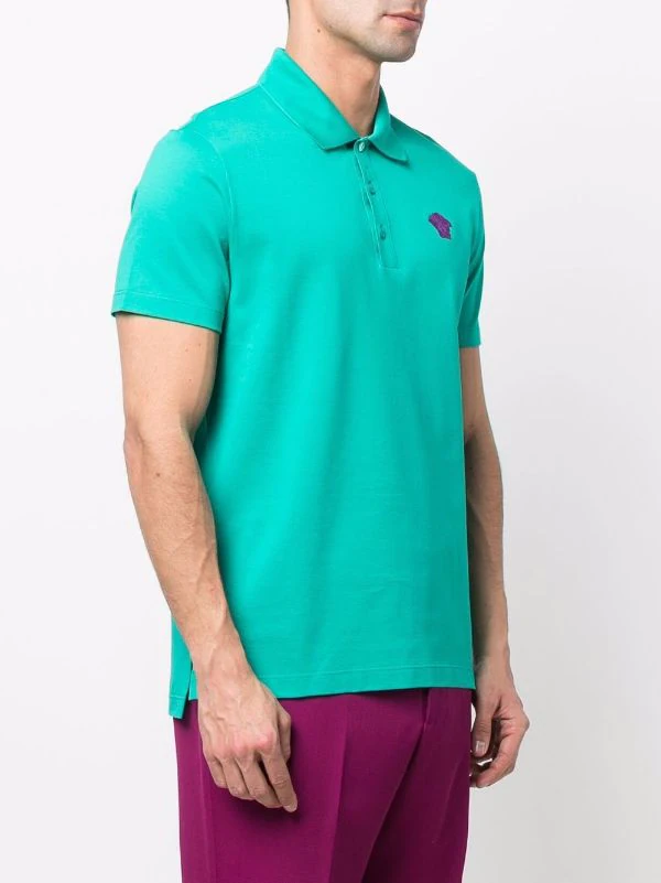 Col polo, patte de boutonnage sur le devant, motif Medusa, manches courtes.