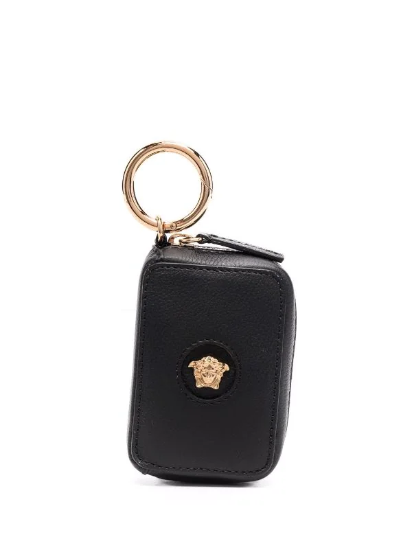 Motif Medusa, fermeture zippée sur le dessus, finitions en métal doré. Matière : cuir.