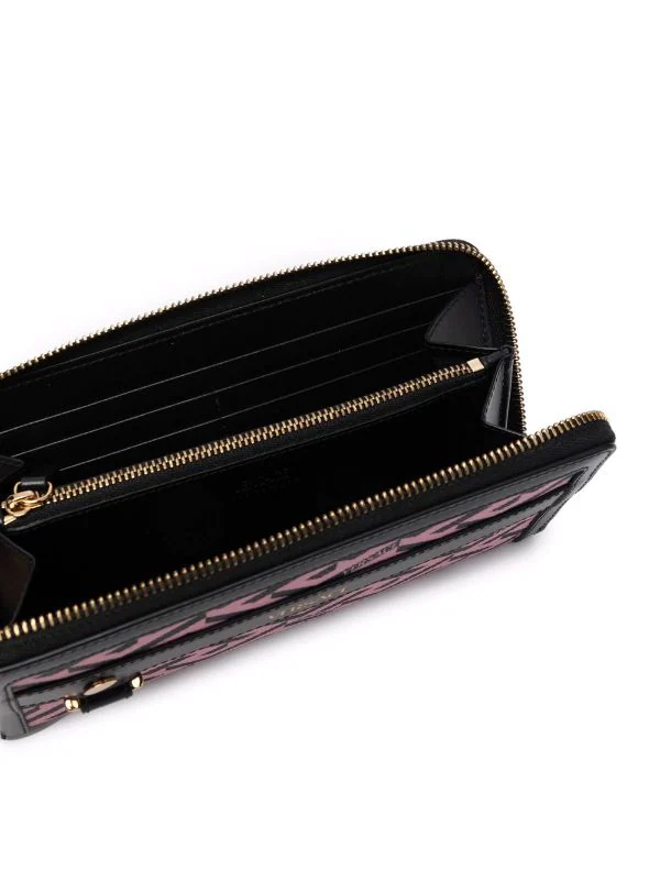 Motif Greca signature imprimé, logo doré, fermeture zippée tout autour, fentes pour carte intérieures, poches intérieures zippées. Matière : cuir.