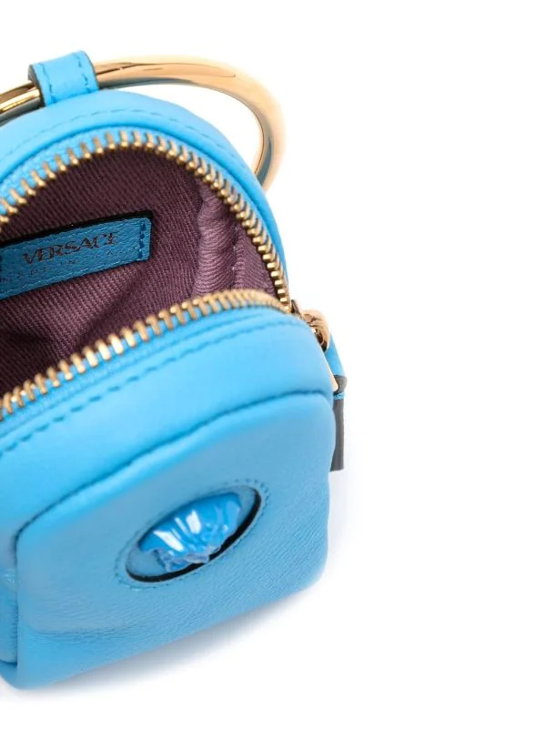 Motif Medusa, logo imprimé à l’arrière, fermeture zippée sur le dessus, anse arrondie, compartiment principal. Matière : cuir.
