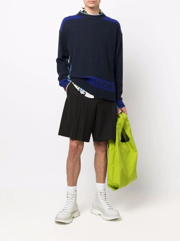 Design à empiècements, encolure ras du cou, manches longues, ourlet nervuré.