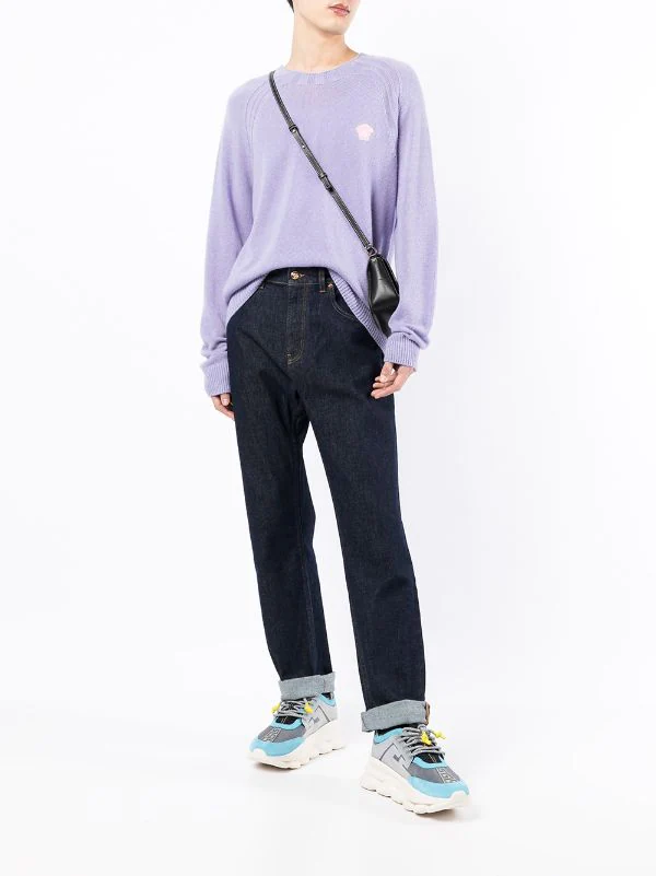 Encolure ras du cou, maille fine, manches longues, ourlet nervuré. Couleur : violet.