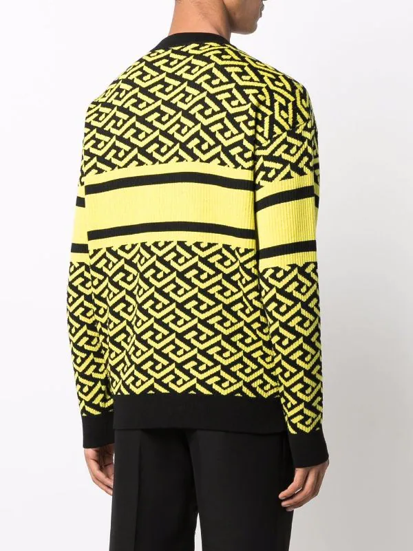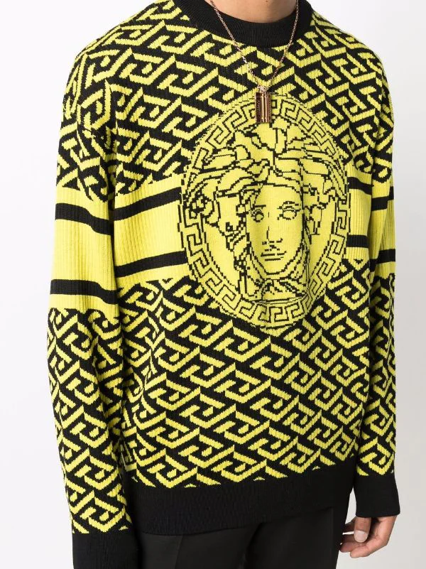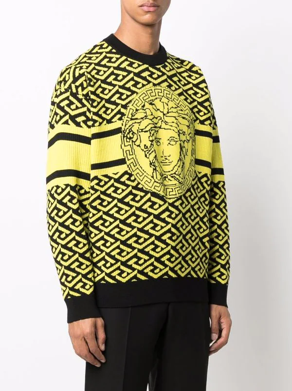 Imprimé La Greca signature, motif Medusa, jacquard à motifs, encolure ras du cou, épaules tombantes, manches longues, poignets nervurés, ourlet nervuré.