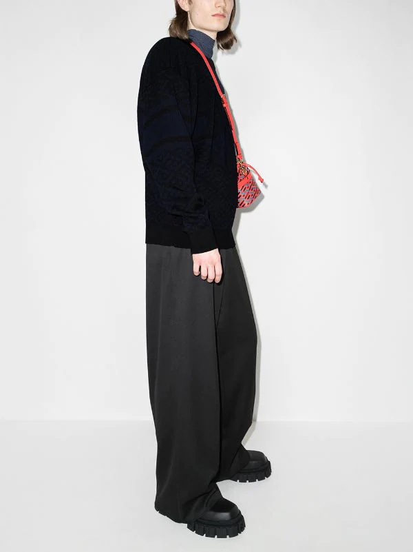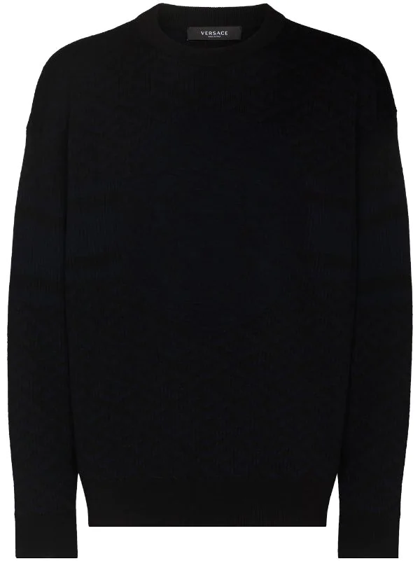 Imprimé La Greca signature, motif Medusa, motif jacquard, encolure ras du cou, épaules tombantes, manches longues, poignets nervurés, ourlet nervuré.