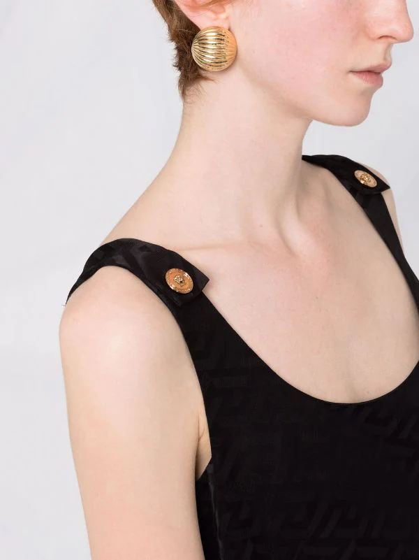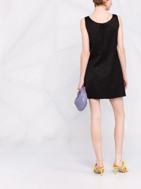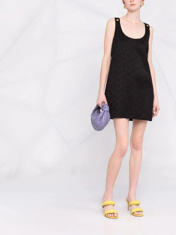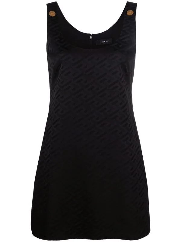 Encolure arrondie, design sans manches, détail Medusa, imprimé La Greca signature, ourlet droit, fermeture zippée à l’arrière. Couleur : noir.
