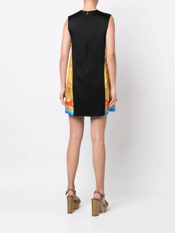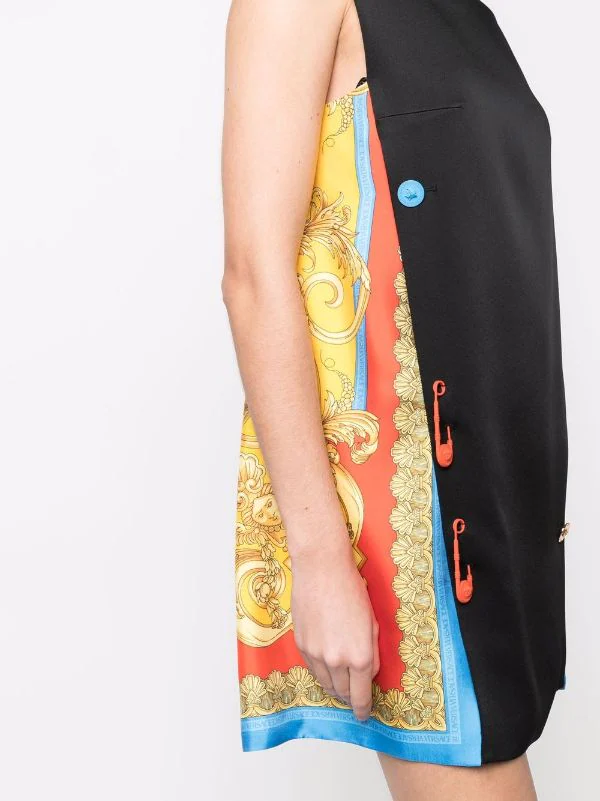 Encolure ronde, fermeture zippée à l’arrière, design sans manches, détail d’épingle Medusa signature, ourlet incurvé. Couleur : noir.