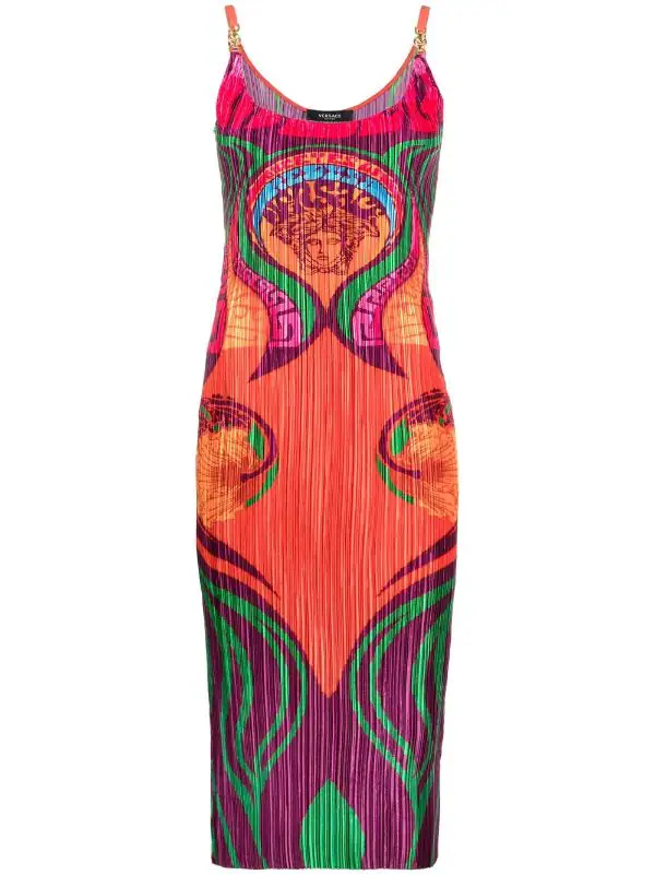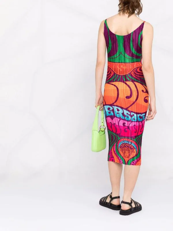 Versace robe plissée à logo imprimé