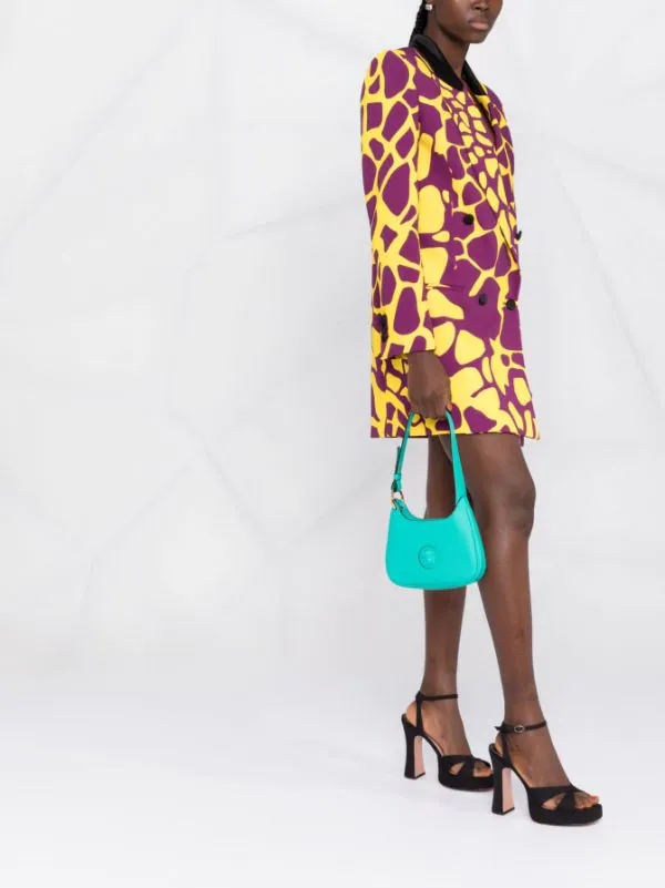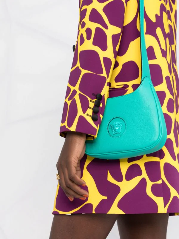 Design ton sur ton, détail Medusa, compartiment principal, bretelle portée épaule unique. Couleur : vert.