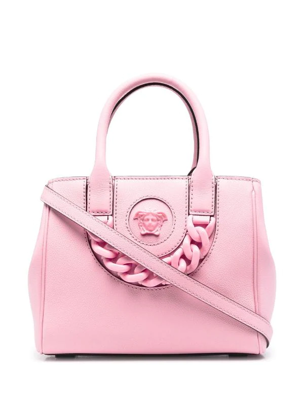 Motif Medusa, détails de chaînes, anses arrondies, bride porté épaule détachable et ajustable, poche intérieure zippée.