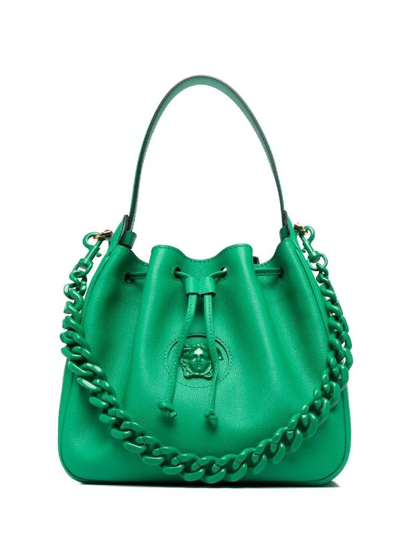 Détail Medusa, logo imprimé à l’arrière, anse classique, bride porté épaule en chaîne détachable, bride porté épaule détachable et ajustable, lien de resserrage sur le dessus, compartiment principal, poches intérieures zippées, logo imprimé à l’intérieur, finitions en métal doré. Matière : cuir.