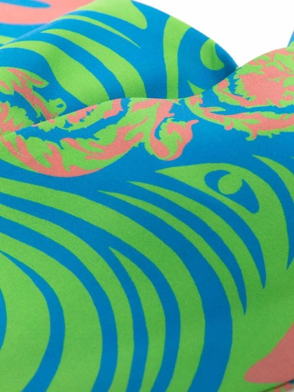 Imprimé abstrait, fermeture nouée au dos, taille ajustable.