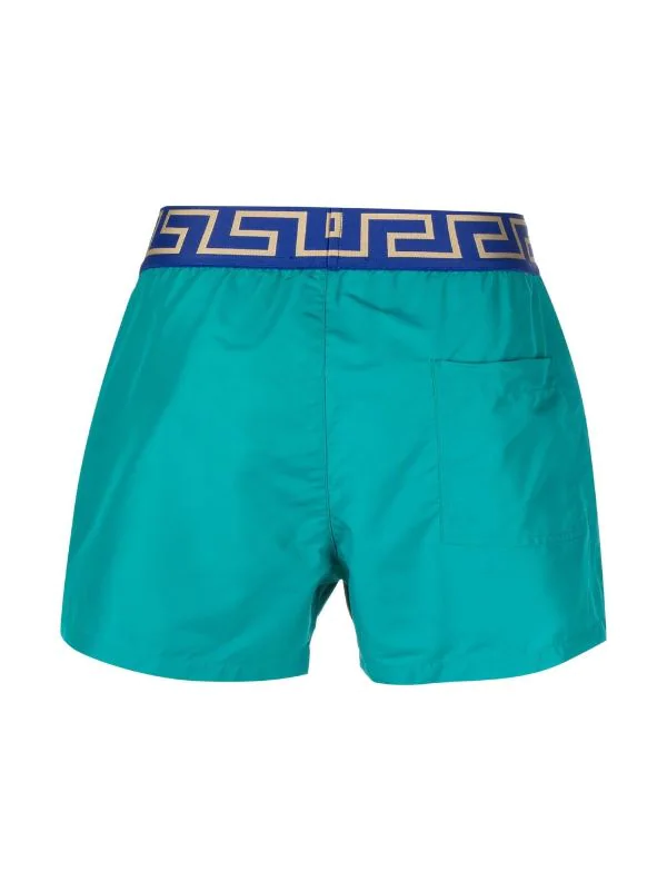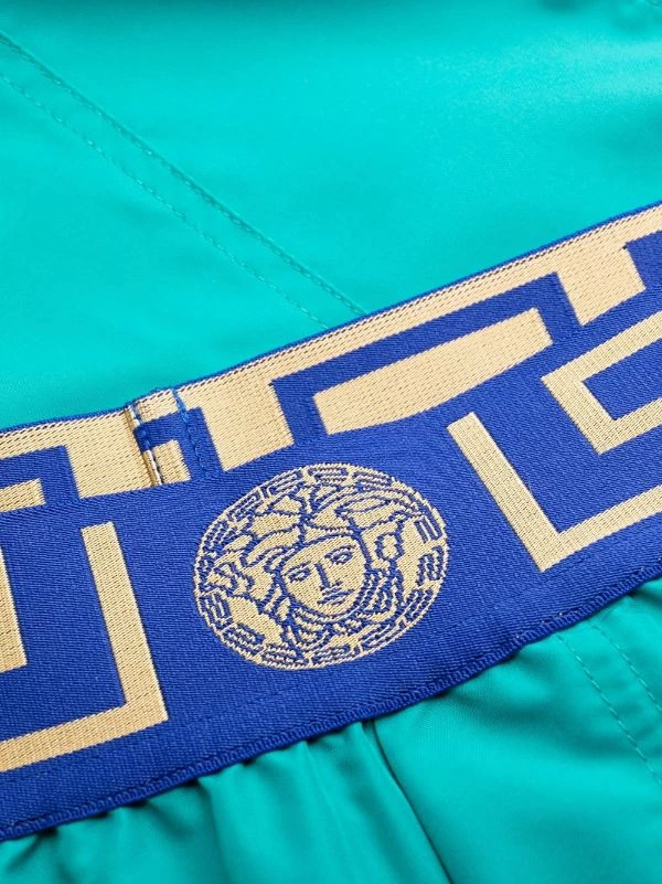 Motif Medusa, motif Greca signature imprimé, ceinture élastique. Veillez à essayer les maillot de bain par-dessus vos propres sous-vêtements.