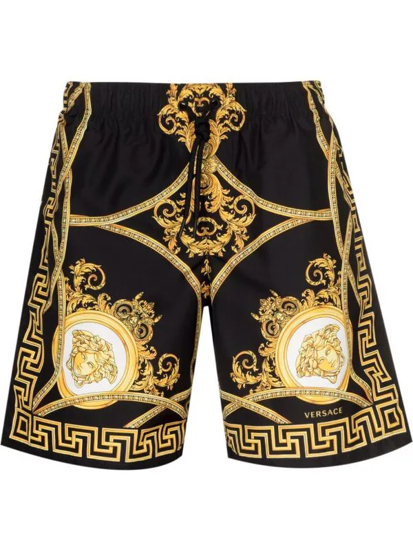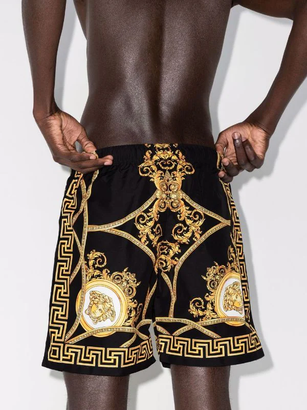 Détail Greca signature, imprimé Barocco signature, motif Medusa, ceinture élastique. Veillez à essayer les maillot de bain par-dessus vos propres sous-vêtements.