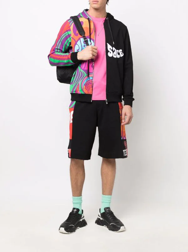 Imprimé abstrait, lien de resserrage à la taille, hauteur genou, deux poches latérales fendues, poche arrière passepoilée. Matière : coton.