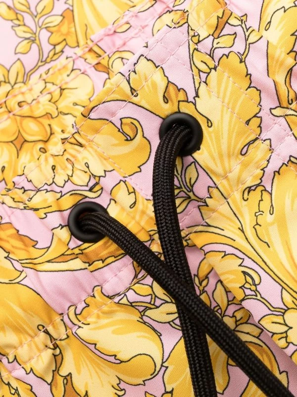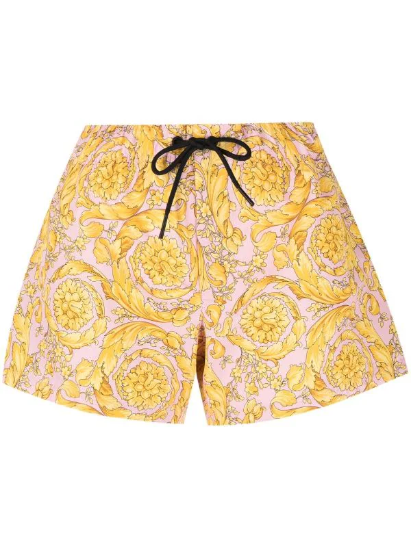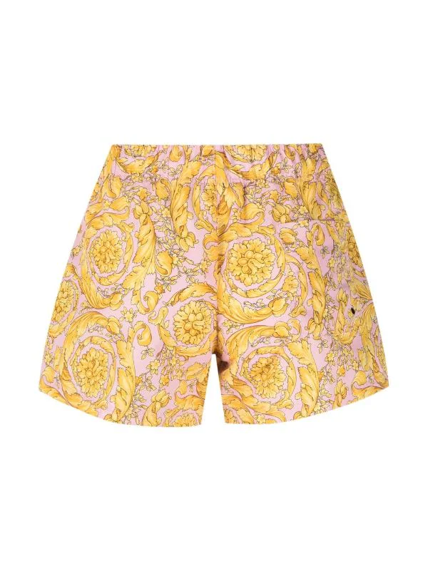 Motif baroque, taille élastique à lien de resserrage, ourlet droit. Couleur : jaune. Veillez à essayer les maillot de bain par-dessus vos propres sous-vêtements.