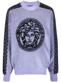 Motif Medusa, imprimé La Greca signature, encolure ras du cou, épaules tombantes, manches longues, bordures nervurées. Matière : coton.