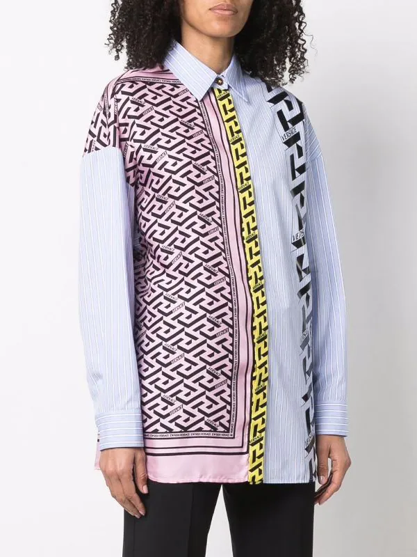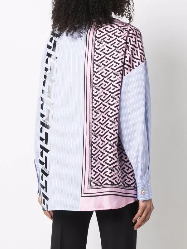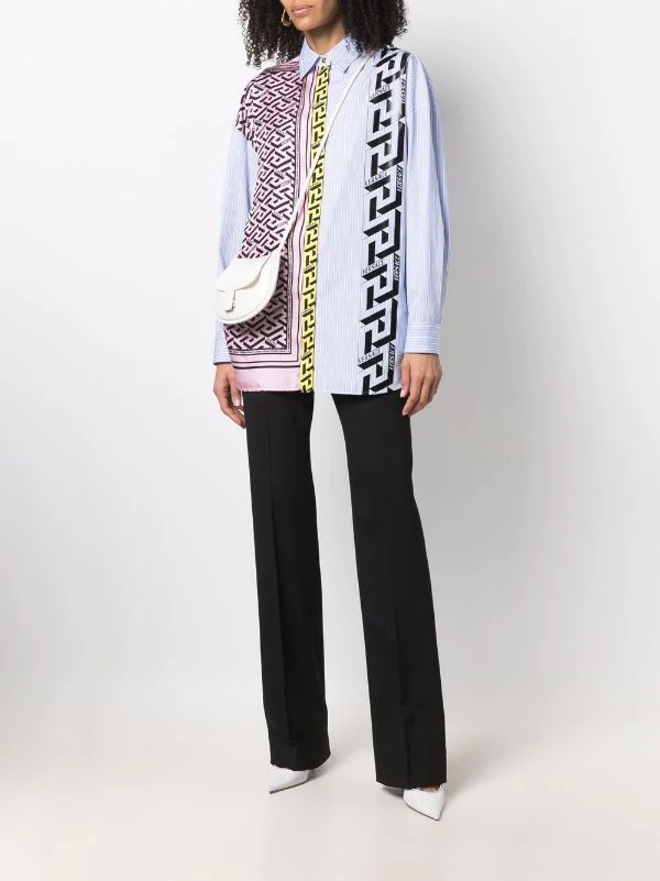 Imprimé monogrammé, design à empiècements, col classique, boutonnière sur le devant, manches longues, poignets boutonnés, ourlet incurvé.