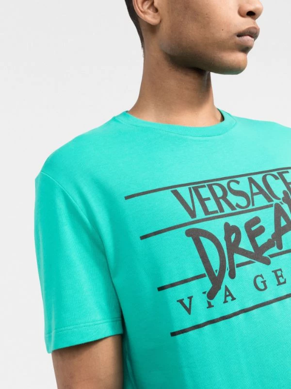 Tricot point jersey, slogan imprimé sur l’avant, logo imprimé à la poitrine, manches courtes, ourlet droit. Matière : coton.