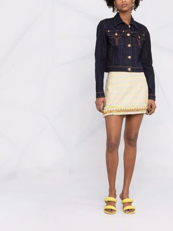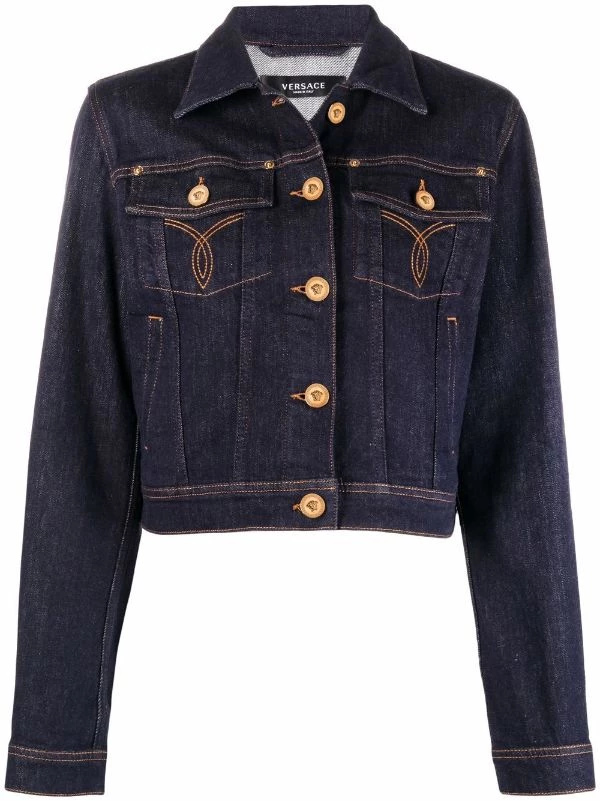 Logo imprimé à l’arrière, motif Medusa, col classique, boutonnière sur le devant, deux poches poitrine à rabat, poches latérales fendues, manches longues, coupe courte. Matière : coton mélangé.