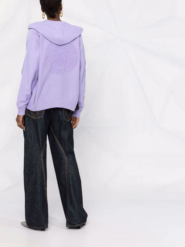 Motif Medusa, capuche classique, fermeture zippée devant, épaules tombantes, manches longues.