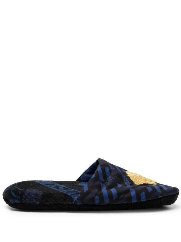 Imprimé La Greca signature, motif Medusa, bout rond, design à enfiler, semelle plate. Matière : coton.