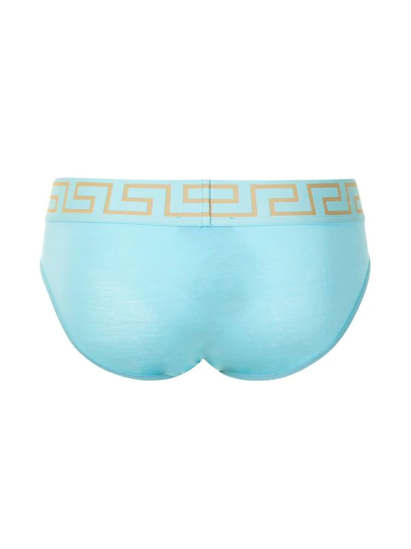 Ceinture élastique, motif Greca signature imprimé, motif Medusa. Couleur : bleu. Matière : coton. Les sous-vêtements et les articles de lingerie doivent être essayés par-dessus vos vêtements ; nous comptons sur vous.