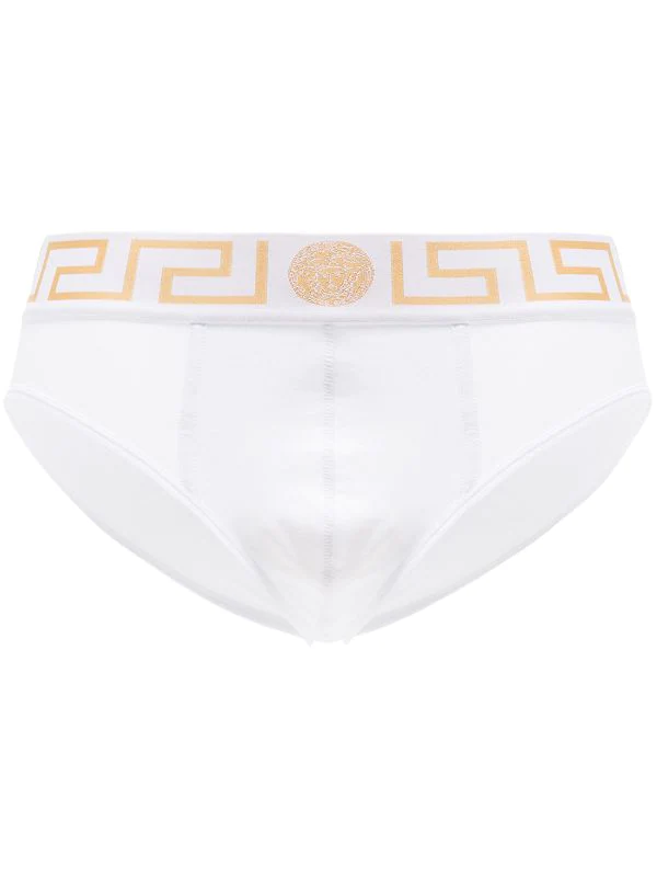 Slip en coton à bordure Greca en coton Versace. Couleur : blanc.