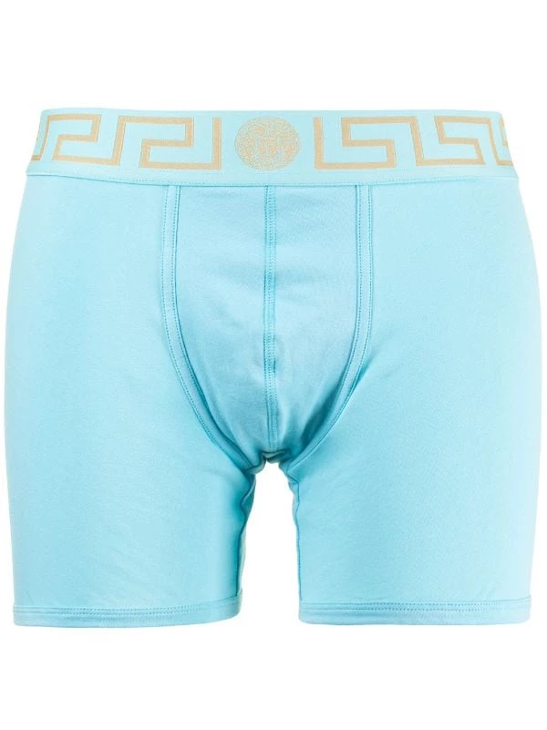 Ceinture élastique, motif Greca signature imprimé, motif Medusa. Couleur : bleu. Matière : coton. Les sous-vêtements et les articles de lingerie doivent être essayés par-dessus vos vêtements ; nous comptons sur vous.