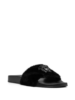 ( Nouvelle Collection ) Versace Claquettes La Medusa En Fourrure Artificielle 1B090 BLACK