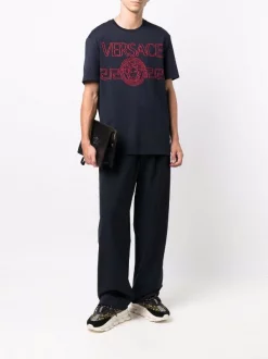 Versace 1U610 NAVY T-shirt à Imprimé Medusa Renaissance Femme