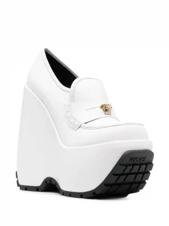 ( Nouvelle Collection ) Versace Mules Triplatform En Cuir 1W00V BIANCO OTTICO-ORO VERSACE