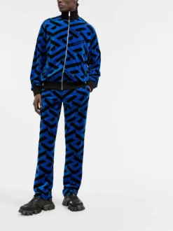( Nouvelle Collection ) Versace Pantalon De Jogging à Motif Géométrique 2UA00 SAPPHIRE/BLACK