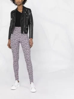 ( Nouvelle Collection ) Versace 5P210 CANDY + BLACK Legging à Imprimé La Greca Femme
