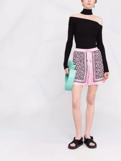 ( Nouvelle Collection ) Versace 5P210 CANDY+BLACK Short De Pyjama à Imprimé La Greca Signature Femme