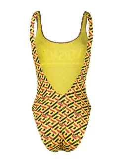 ( Positively Conscious ) Versace 5R080 ORANGEPEEL+REGAL BLUE Maillot De Bain à Imprimé Géométrique Femme