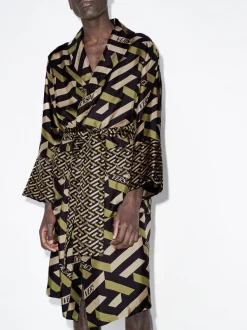 ( Access Edit ) Versace Peignoir La Greca En Soie à Motif Monogrammé Z7150 KAKI