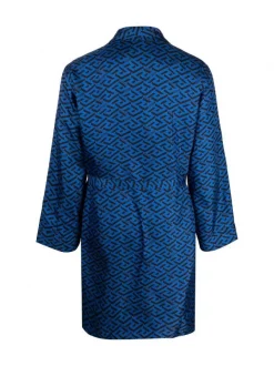 ( Nouvelle Collection ) Versace 5U290 SAPPHIRE BLACK Robe De Chambre En Soie à Logo Homme