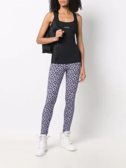 ( Nouvelle Collection ) Versace 5P210 CANDY + BLACK Legging à Imprimé La Greca Femme