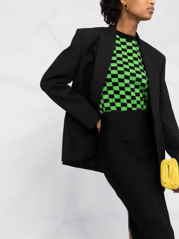 Taille haute, fermeture zippée à l’arrière, coupe mi-longue, construction stretch. Couleur : noir.
